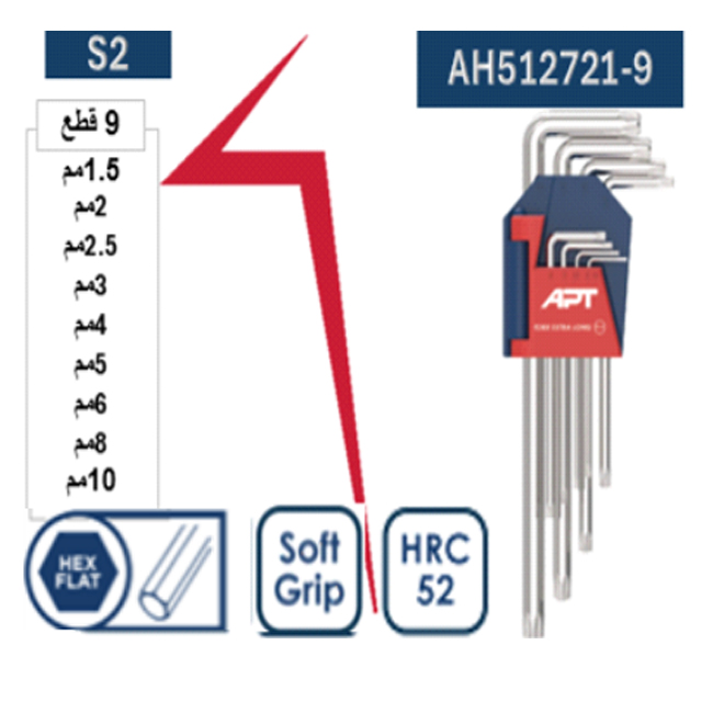 طـقـم ألـن مـسـدس أكثر طــولا 9 قطع من 1.5 الى 10 مم اي بي تي – APT ( S2 )