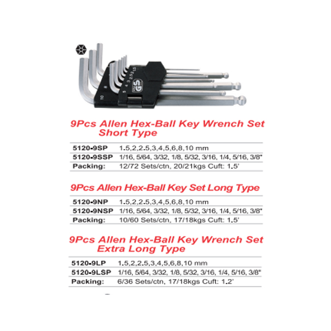 طقم ألن بلية أكثر طولا 9 قطع 1.5-10 مم موديل 5120-9LP تايواني KWG