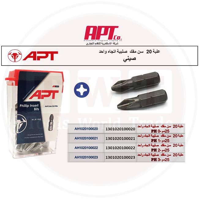 علبة 20 سن مفك صليبة اتجاه واحد 25مم – PH0 اي بي تي موديل APT – AH1020100020