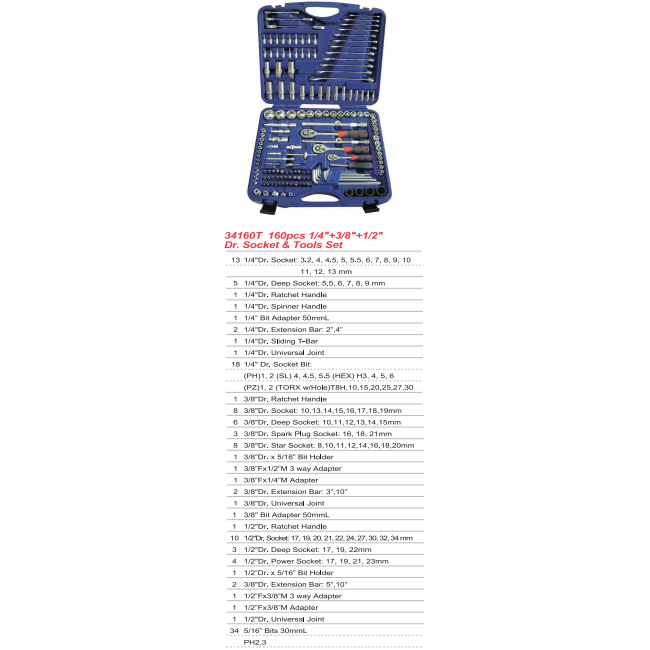 طقم لقم وعدد 160 قطعة موديل 34160T تايواني KWG