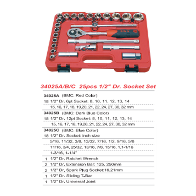 طقم لقم 25 قطعة 5/16-1/4 1 بوصه مشرشرة مربع 1/2بوصه موديل 34025C تايواني KWG