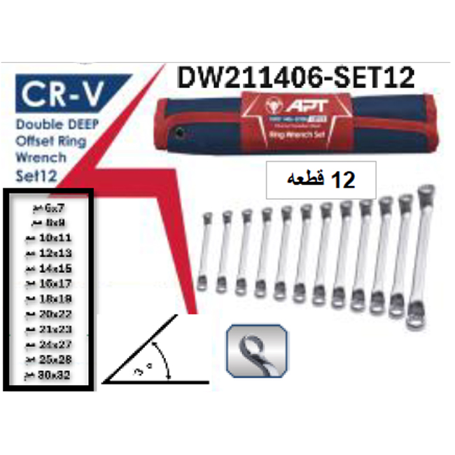 طقم مفتاح مشرشر زاوية 75° 12 قطعه 7-6 مم / 30-32مم كروم فانديوم أي بى تى – موديل APT DW211406-SET12