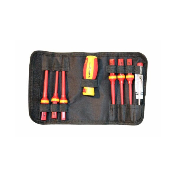 طقم 6 مفكات عازل 1000 فولت + يد متغيرة + مفك تيست جيب 8 قطع صينى موديل APT 561