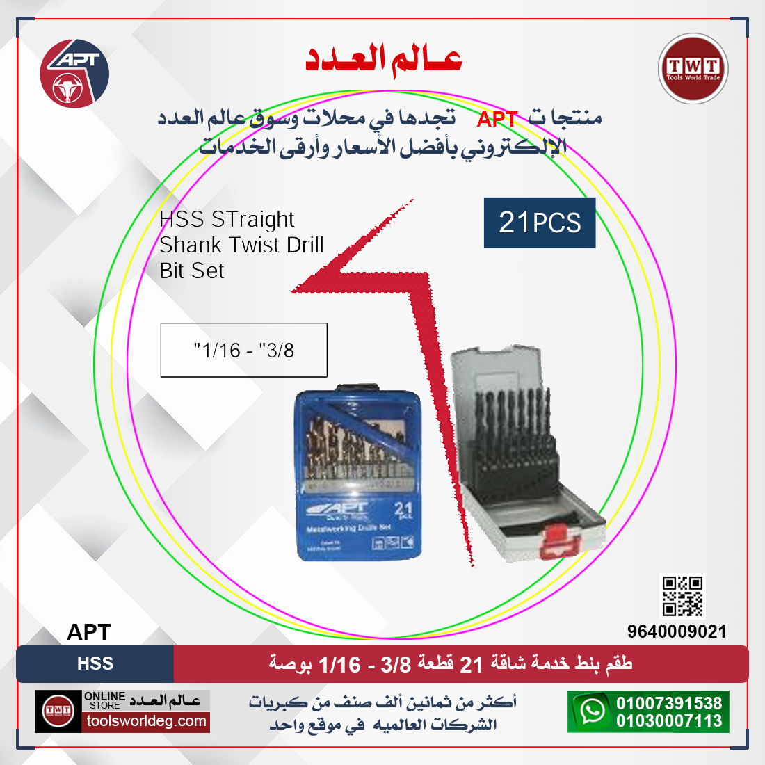 طقمHSS بنط 21 قطعه خدمة شاقة 1/16 بوصه – 3/8 بوصه اي بي تي APT