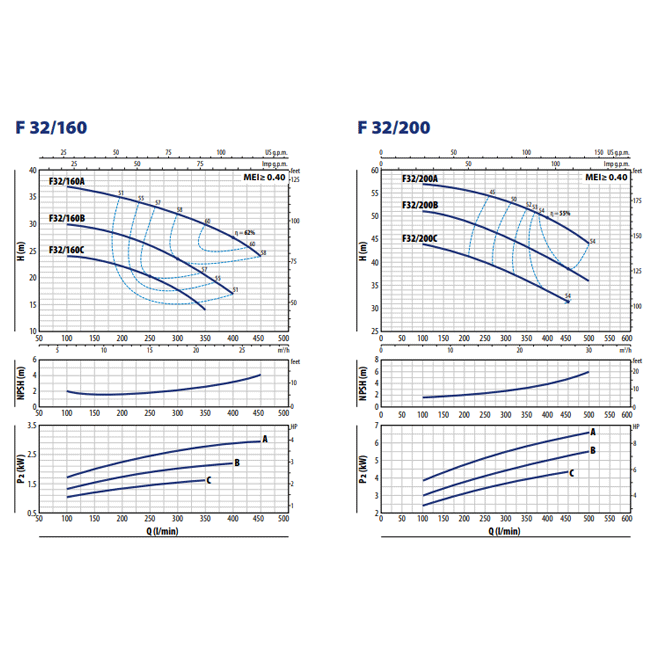 طلمبه بفلنشه بيدريللو 3 فاز 3 حصان 32/50مم إيطالي موديل – PEDROLLO F32/160B