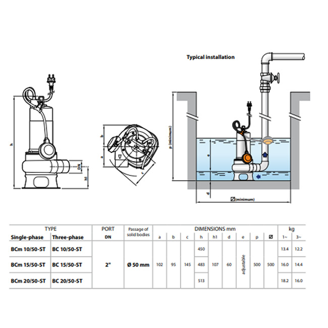 طلمبه غاطسه بيدريللو استانلس رواسب 1حصان 50مم 2بوصه – 12م إيطالي موديل – PEDROLLO BCm 10/50-ST