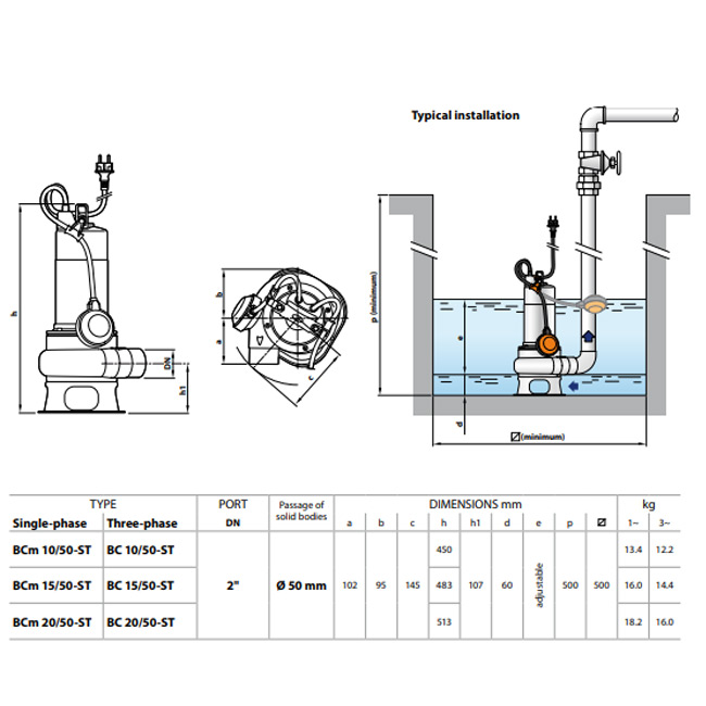 طلمبه غاطسه بيدريللو 1.5حصان ستانلس رواسب 50مم 2بوصه – 14م إيطالي موديل – PEDROLLO BCm15/50-ST