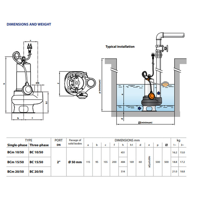 طلمبه غاطسه بيدريللو 1.5حصان مياة و رواسب 50مم 2بوصه – 14م إيطالي موديل – PEDROLLO BCm15/50 -N