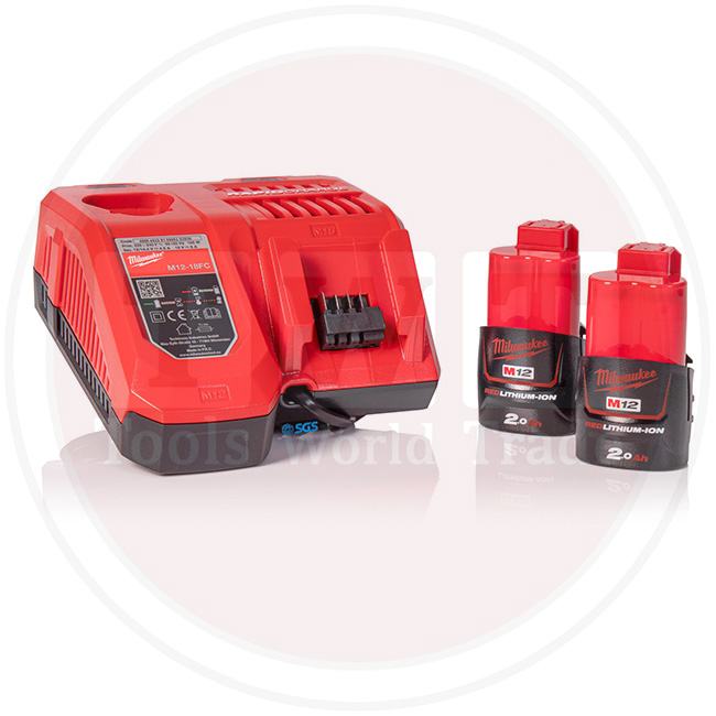 عدد 2 بطاريه 12 فولت 4 امبير + شاحن ميلوكي MILWAUKEE M12NRG-402