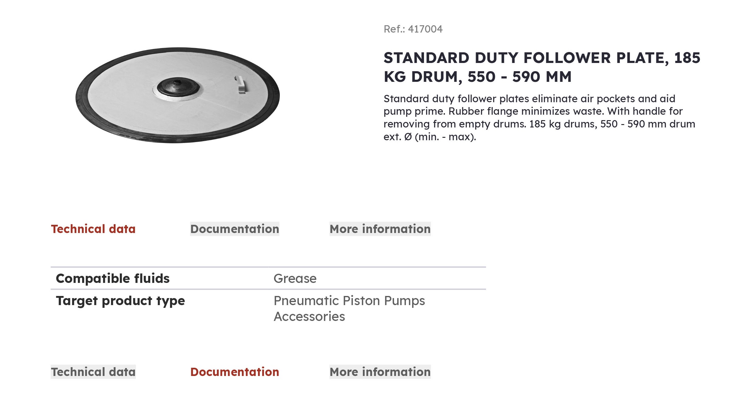 STANDARD DUTY FOLLOWER PLATE, 185 KG DRUM, 550 – 590 MM