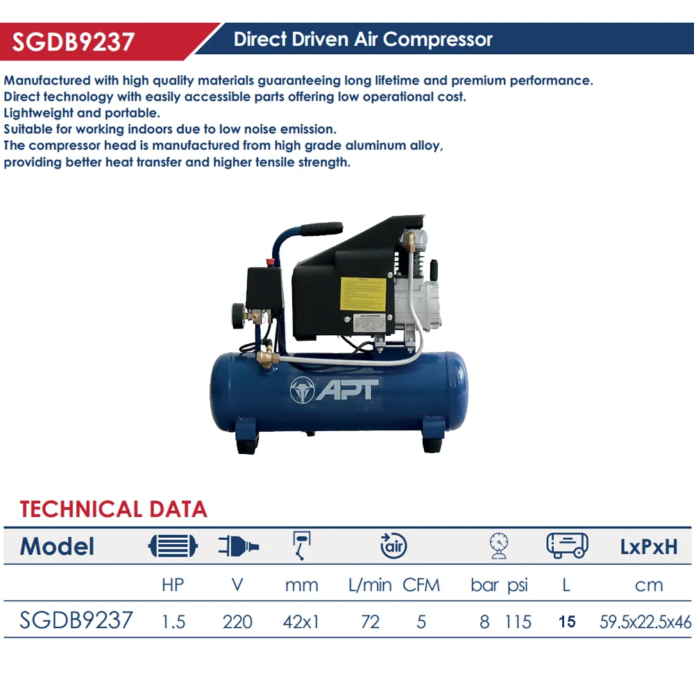 كمبروسر اي بي تي سعة 15 لتر كوبلنج 1.5 حصان 220 فولت ملفات الومنيوم صيني موديل APT – SGDB9237-15L-1.5HP EURO