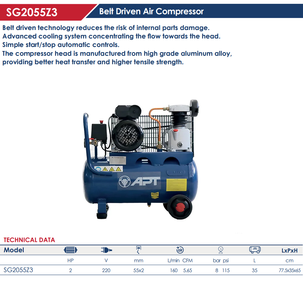 كمبروسر اي بي تي سعة 35 لتر 2 حصان 2 بستم 220 فولت موديل APT – SG2055Z3-35L – 2HP EURO