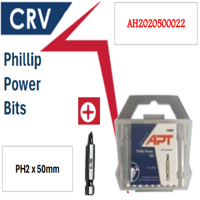 علبة 10 سن مفك صليبة اتجاه واحد 50مم PH2 اي بي تي موديل APT AH2020500022