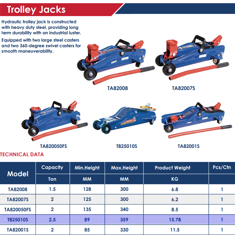 كوريك تمسـاح شنطه بلاستك 2.5 طن 89-359 مم 16 كجم اي بي تي صيني موديل APT T825010S