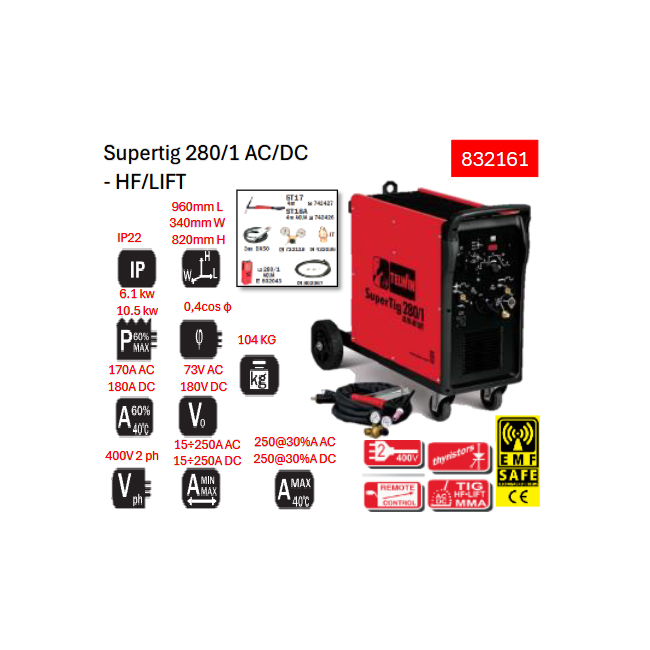 ماكينة لحام تيلوين ارجون 250 امبير 380 فولت موديل – TELWIN SUPERTIG280 AC/DC