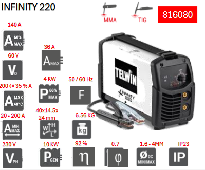 ماكينة لحام تيلوين انفرتر 200 أمبير ايطالى TELWIN INFINITY 220-MMA