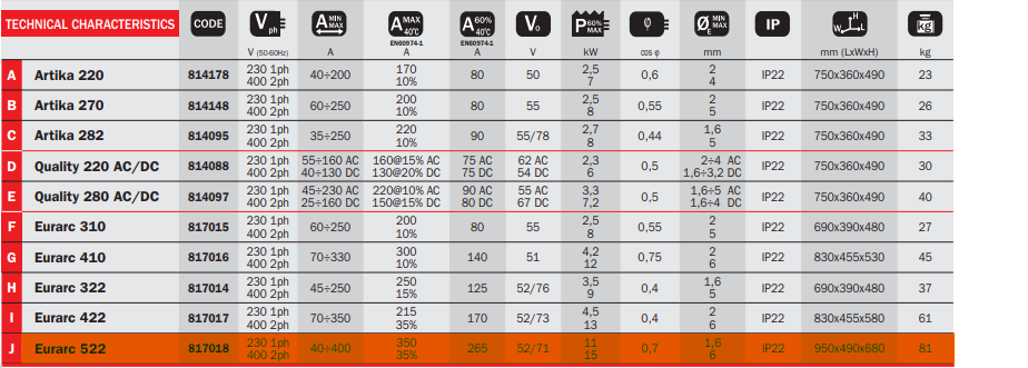 الطراز: EURARC 522 (كود 817018) من شركة Telwin الإيطالية.