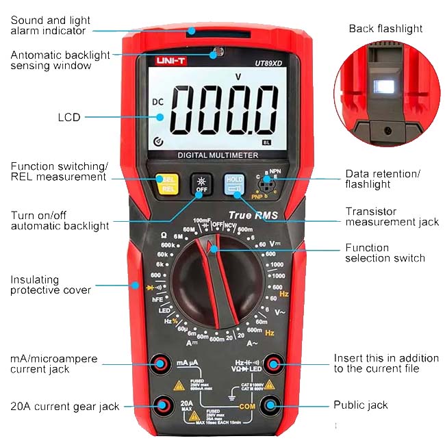 مالتي ميتر يوني تي ديجيتال 1000 فولت + مكثفات مقاومه 60 اوم موديل UNI-T UT89XD