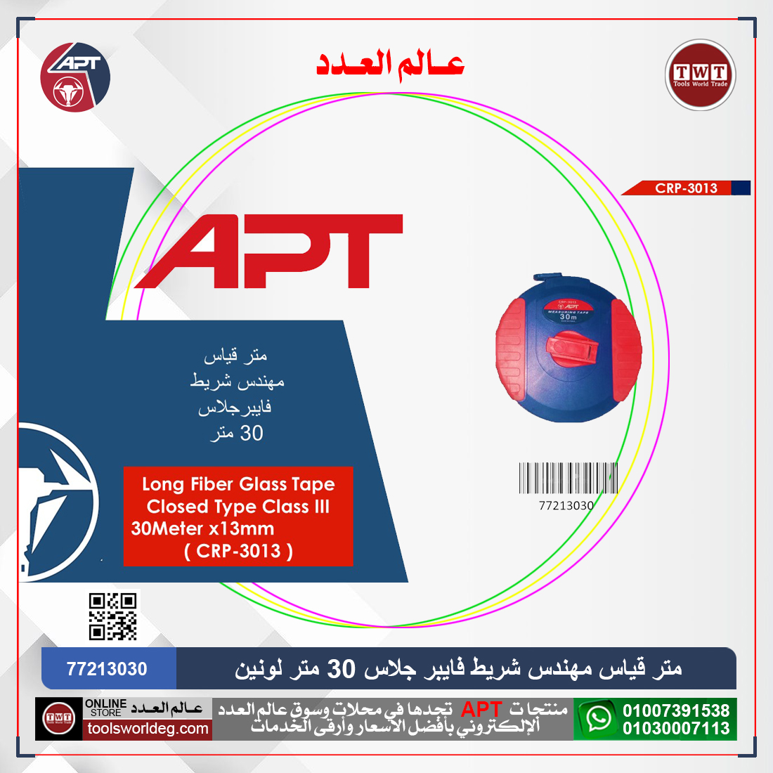 الوسوم: APT, TOOLS WORLD TRADE, TWT, اي بي تي, عالم العدد, عدد, عدد يدويه, متر, متر قياس, متر قياس مهندس, متر قياس مهندس شريط فايبر جلاس, متر قياس مهندس شريط فايبر جلاس صيني