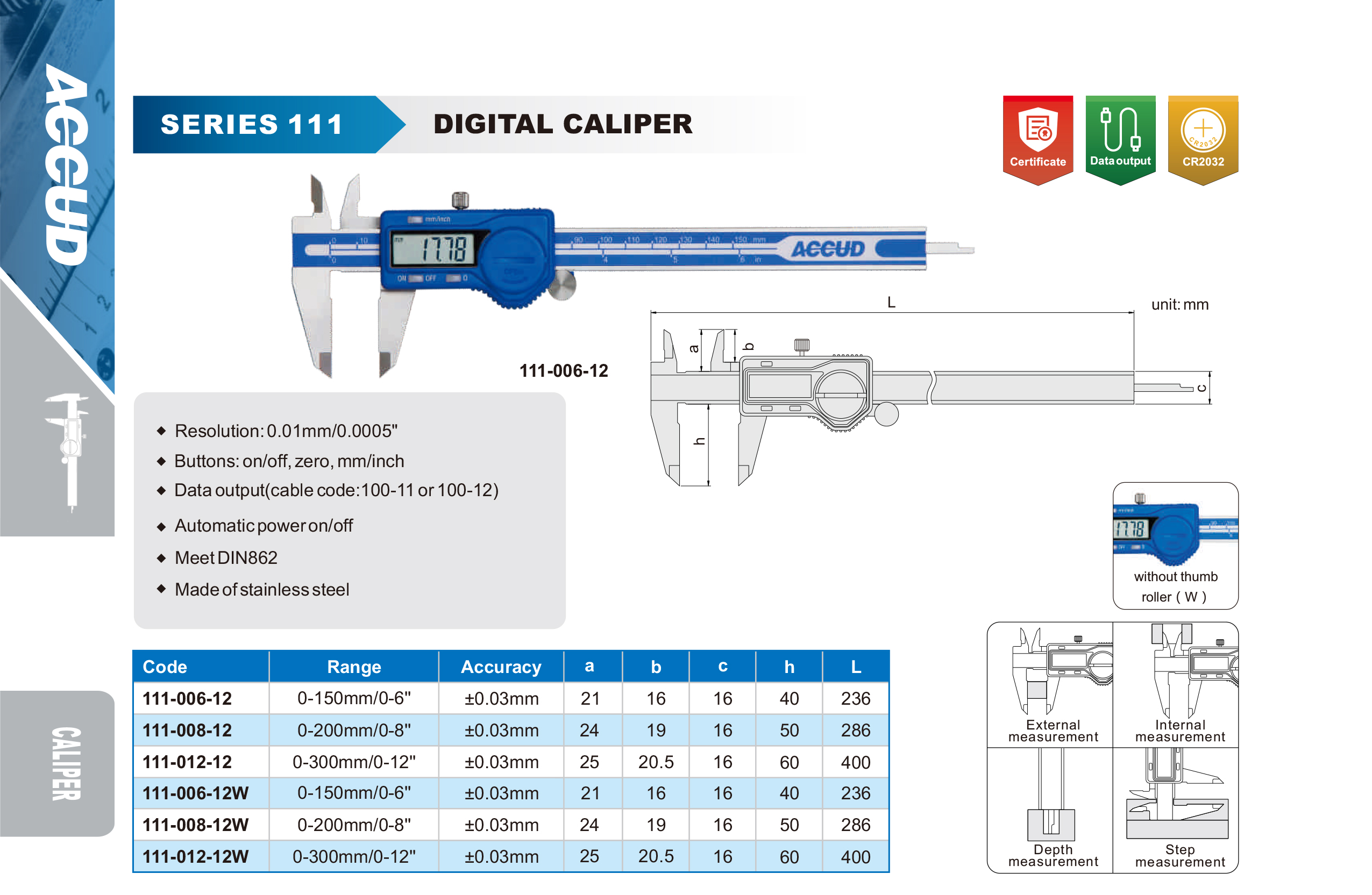 باكوليس ديجيتال اكيود بطاريه 6 بوصة 150 مم دقة 0.01 مم عمر اطول CR2032 ACCUD