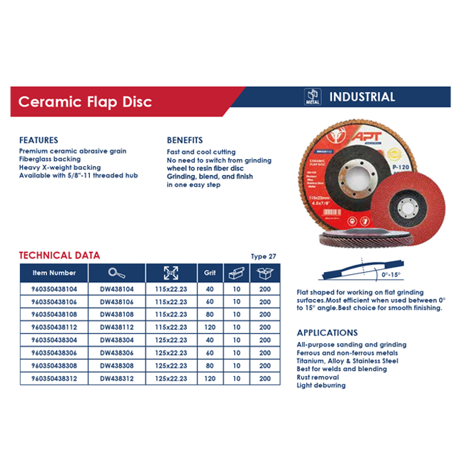 صنفرة مروحية Cer-T27 فلات سـيراميك 125مم خشانة 120 اي بي تي APT DW438312