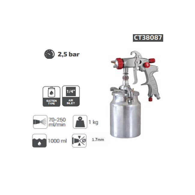 قطر فوهة 1.7 مم مناسب لتطبيق خط متوسط من المادة اللاصقة أو التغليف — مناسب للأعمال المتوسطة سواء في النجارة، أو في ورشة التشطيبات.
