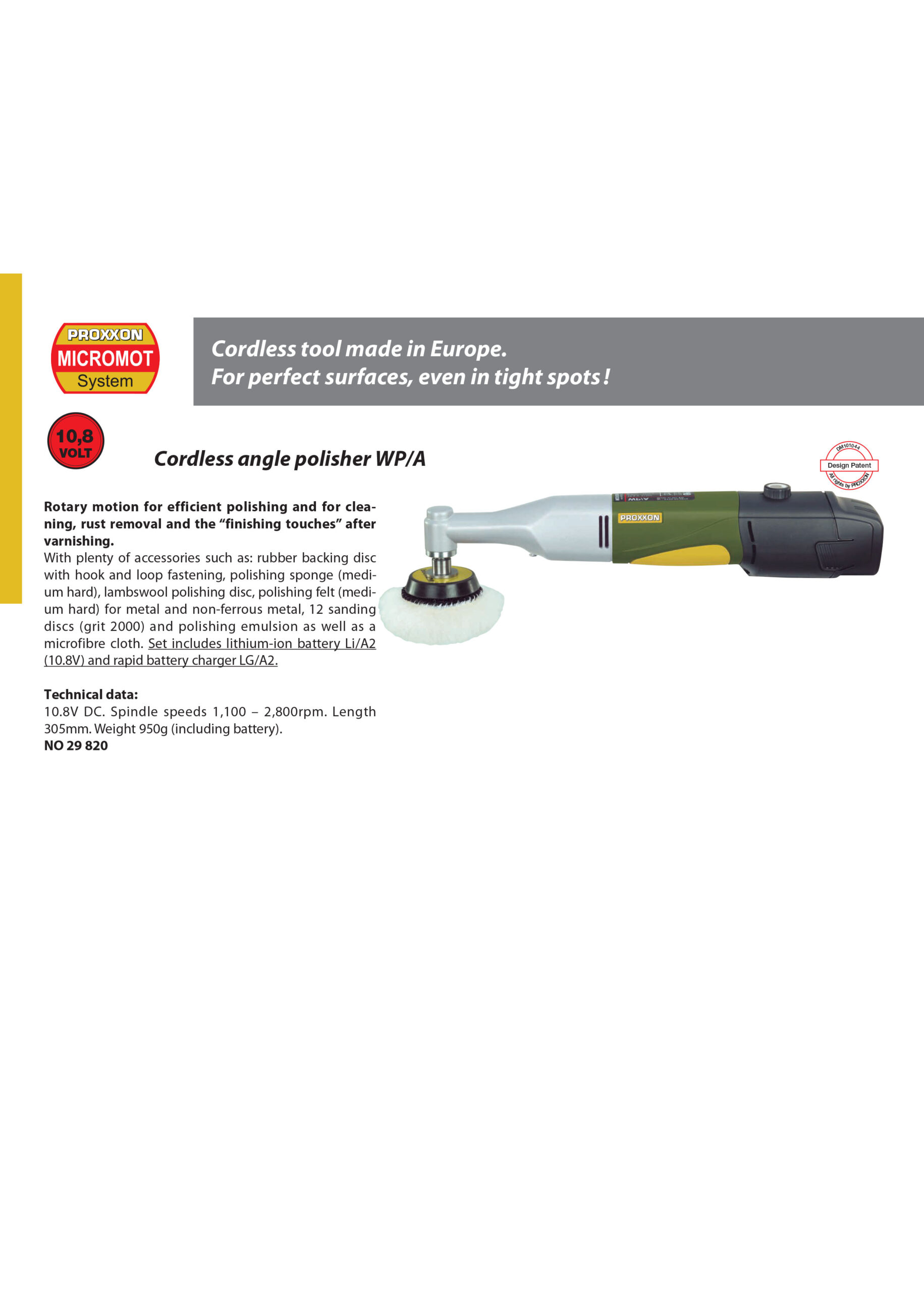 مصقول زاوية اللاسلكي بروكسون الماني PROXXON WP/A