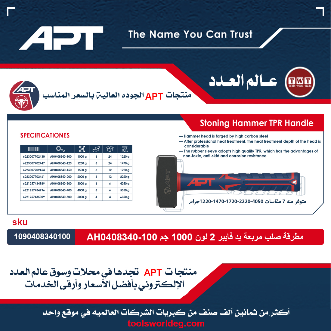 الوسوم: APT, HAMMER, TOOLS WORLD, ادوات يدويه, العدد, اي بي تي, شاكوش, شاكوش بناريج, شواكيش, عالم العدد, مطارق, مطرقة صلب مربعة يد فايبر 2 لون 1500ج, مطرقة صلب مربعة يد فايبر 2 لون 1500جم APT TPR AH0408340-150, مطرقة صلب مربعة يد فايبر 2 لون 1500جم اي بي تي موديل APT AH0408340-150, مطرقه