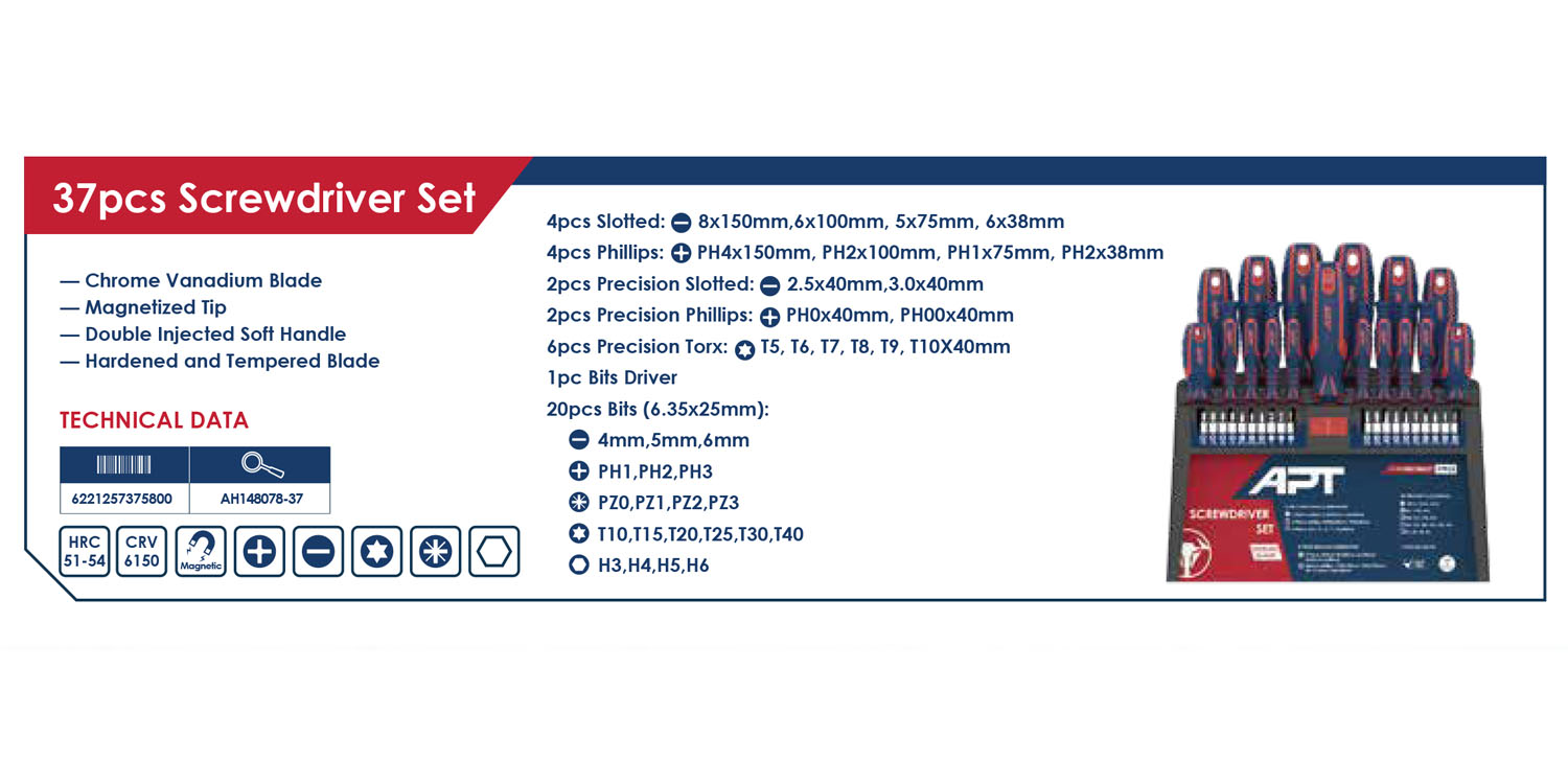 طقم ستاند مفكات 37 قطعة اي بي تي موديل APT AH148078-37