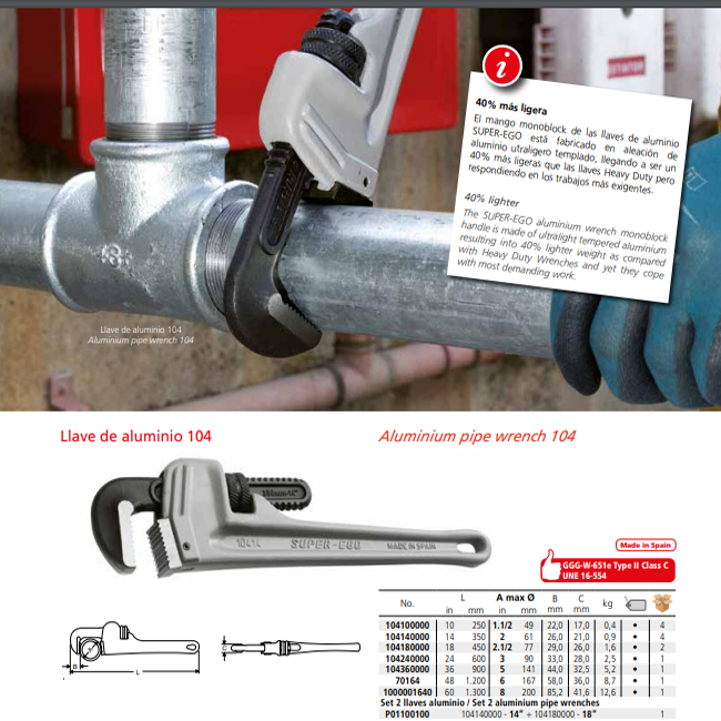مفتاح انجليزي استلسون ألـمنـيــوم خدمة شاقة 14 بوصه سوبر ايجو أسبانى موديل SUPER-EGO 104140000