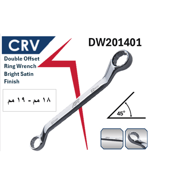 مفتاح مشرشر زاوية 45° 18 – 19 مم كروم فانديوم أي بى تى موديل APT DW201401 18×19