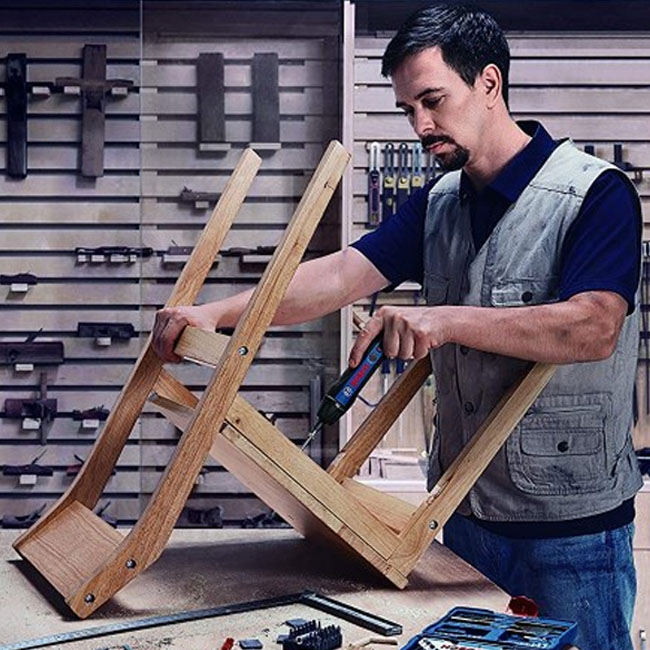 • الأداة موجهة للعمل على الخشب، المعدن، البلاستيك، وكذلك التجميع الدقيق كلوحة الأم أو خزانة كهربائية