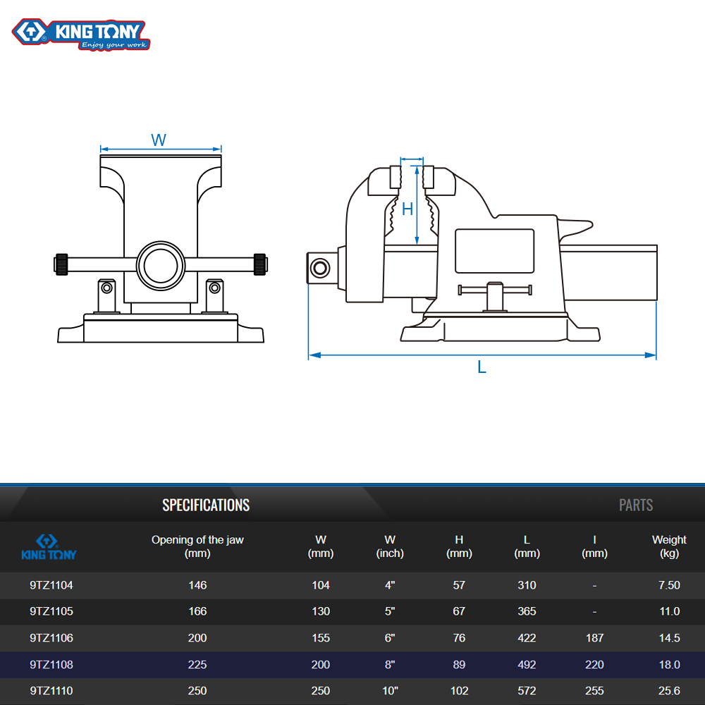 منجلة 8 بوصه صلب متحركة هـ. د ضمان 10 سنوات KING TONY
