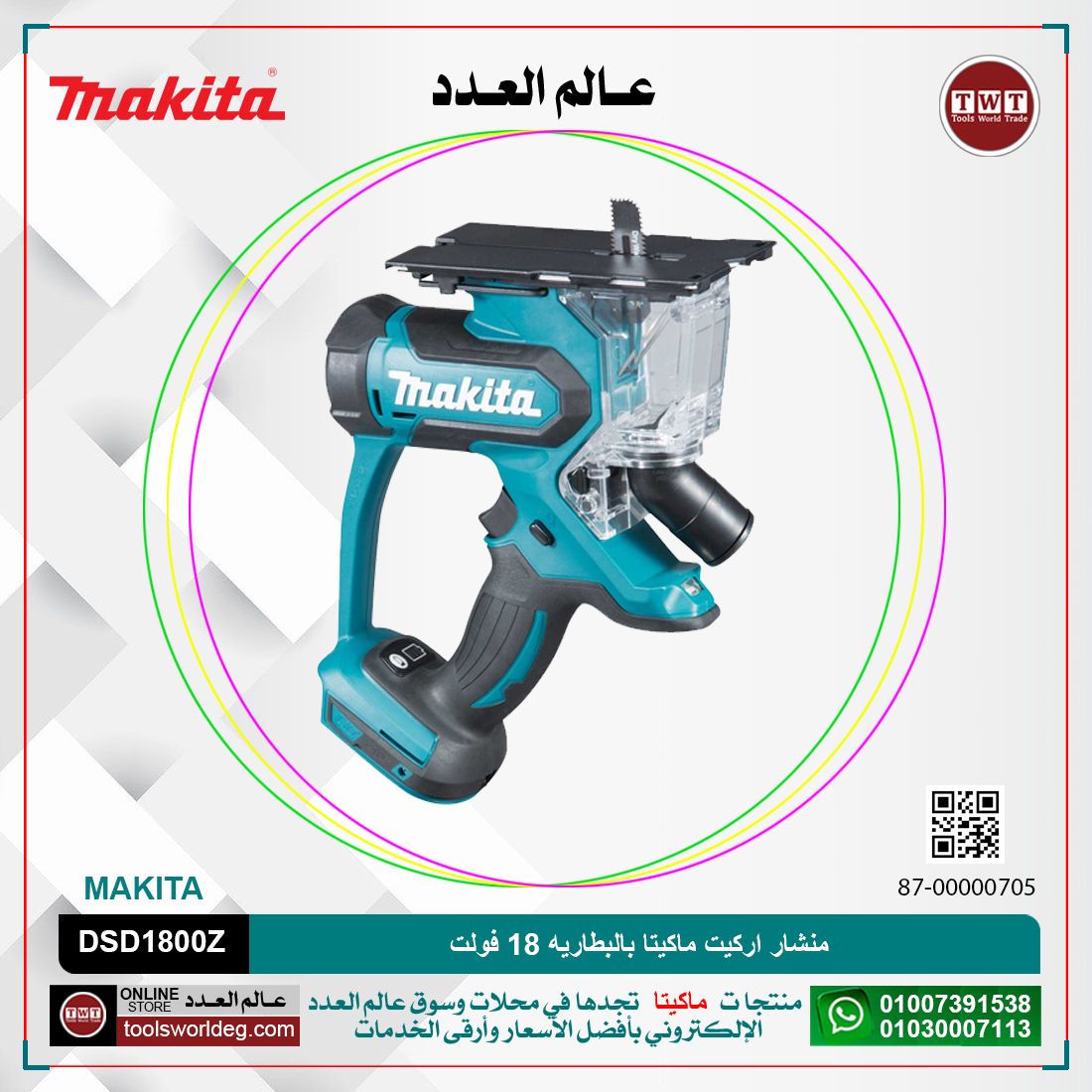 كن أول من يقيم “منشار اركيت ماكيتا بالبطاريه 18 فولت موديل – MAKITA DSD180 0Z”