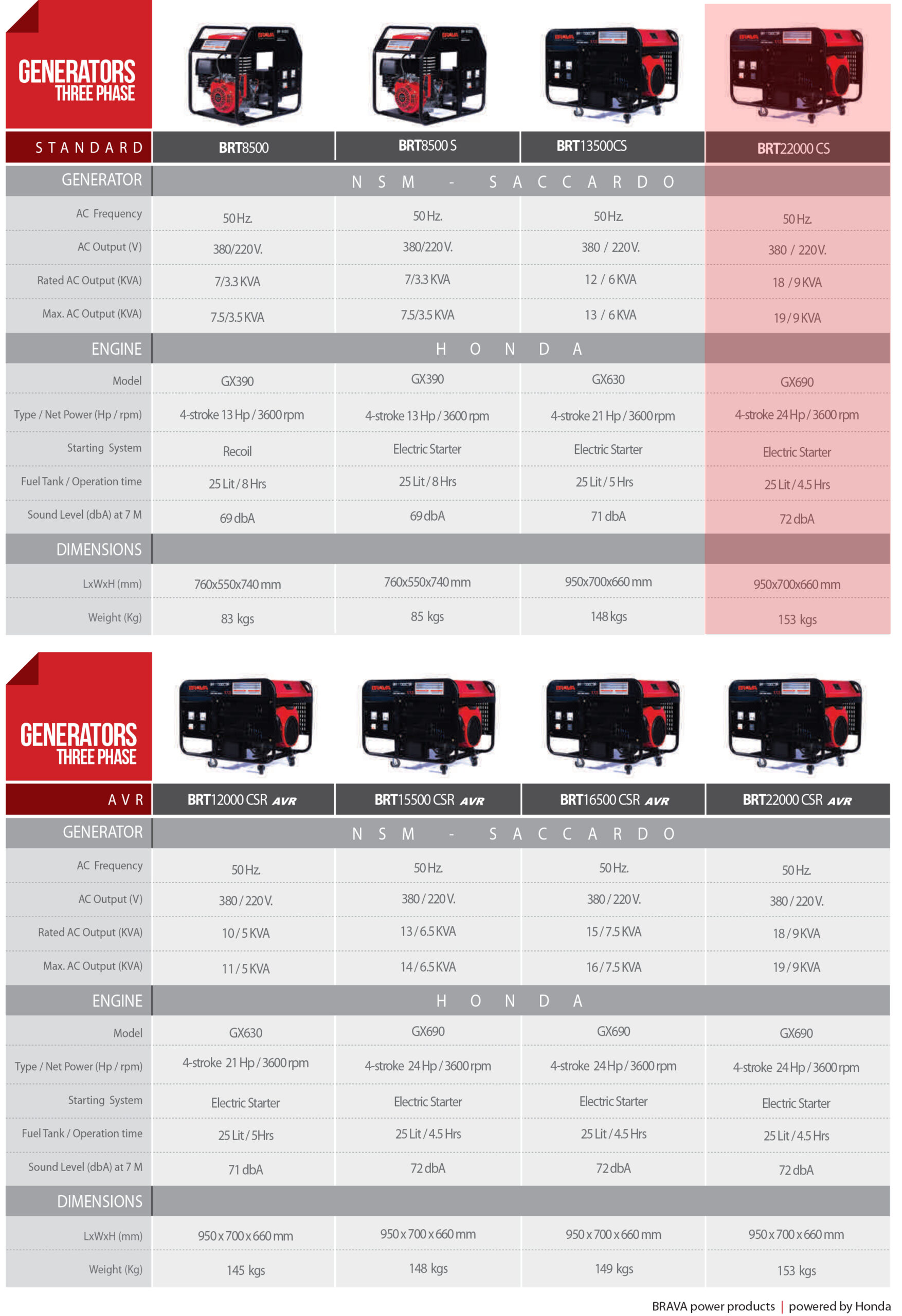 مولد كهرباء بنزين مارش 21 كيلو وات 26 حصان مزود بمنظم تيار 3 فاز هوندا طراز BRAVA BRT22000CS – RGXV 690
