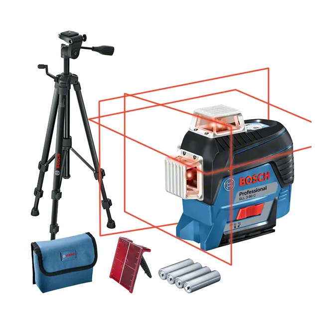 ميزان ليزر بوش 3 مستويات 80 متر بطارية ليثيوم ايون موديل BOSCH GLL 3-80 C Carton BT150