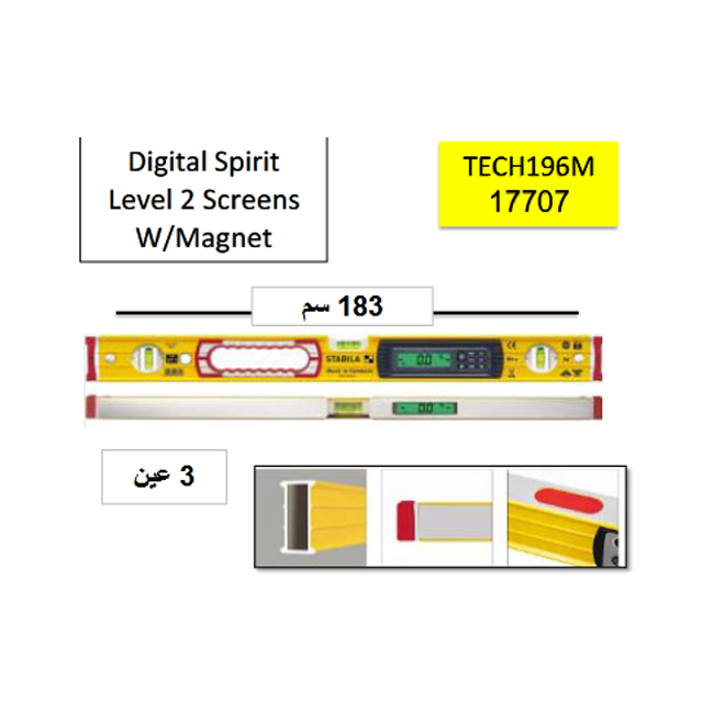 ميزان مياه ستابيلا 3 عين ديجيتال 183 سم مغناطيسى بيد المانى موديل STABILA TECH196M