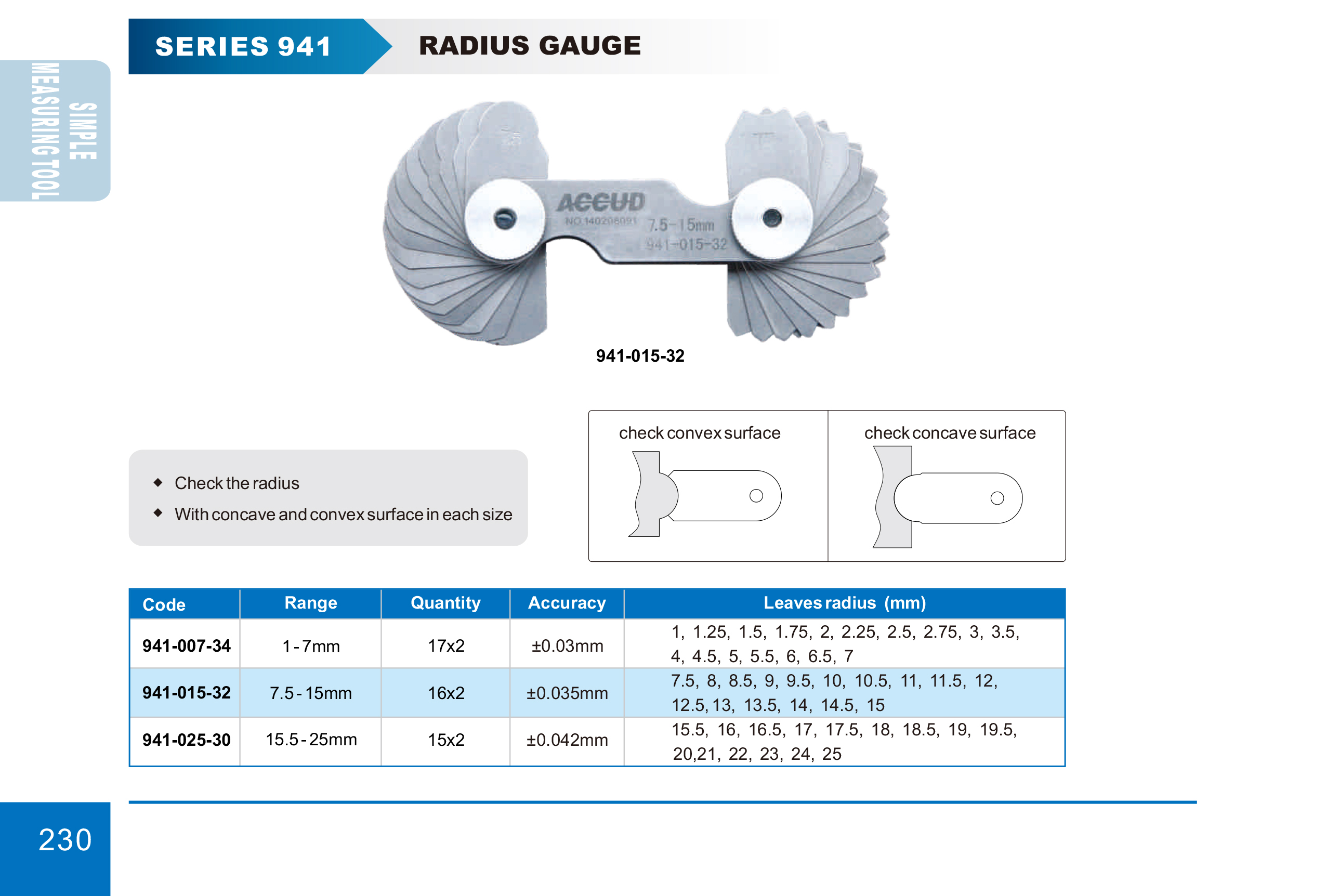 طقم مطوه سن الاووظ 32 ورقة 1مم إلى 7 مم RADIUS GAUGE 1mm-7mm ACCUD
