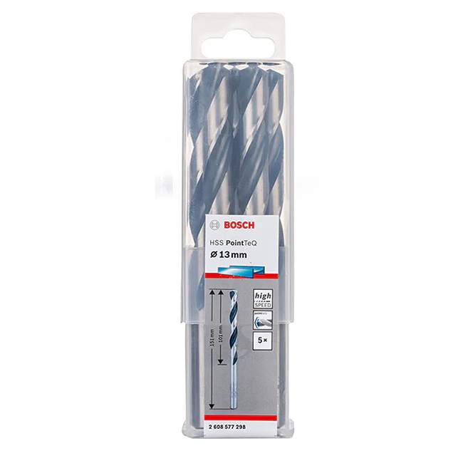 علبة بنط حدادى 5 قطع بوش قطر 13 مم بوينت تك BOSCH HSS Twist Drill Bit PointTeQ 13.0mm PACK OF 5
