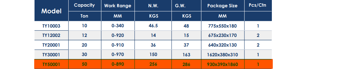 TY50001 مكبس شجرة هيدروليك يدوى / بالهواء 50 طن صينى